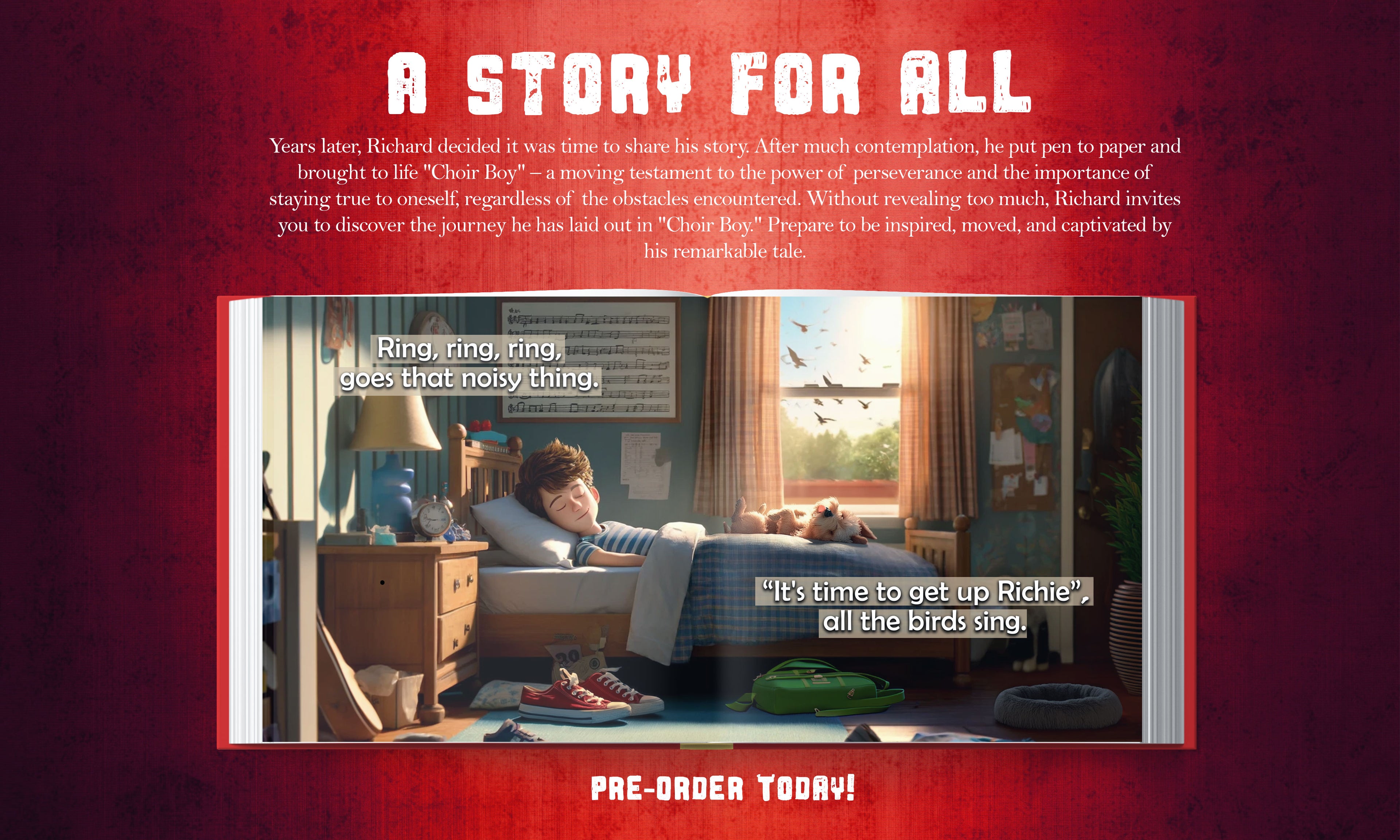 Choir Boy - The Great Talent Show is an uplifting true story about Richie, a brave choir boy navigating the trials of growing up while being bullied for his unique voice. Amidst the challenges, Richie embarks on a heartfelt journey to embrace his talent and prove that strength comes from being true to oneself. As the school’s great talent show approaches, Richie discovers the power of resilience, friendship, and self-acceptance. This encouraging tale will resonate with young readers, inspiring them to celebrate their individuality and chase their dreams despite adversity.